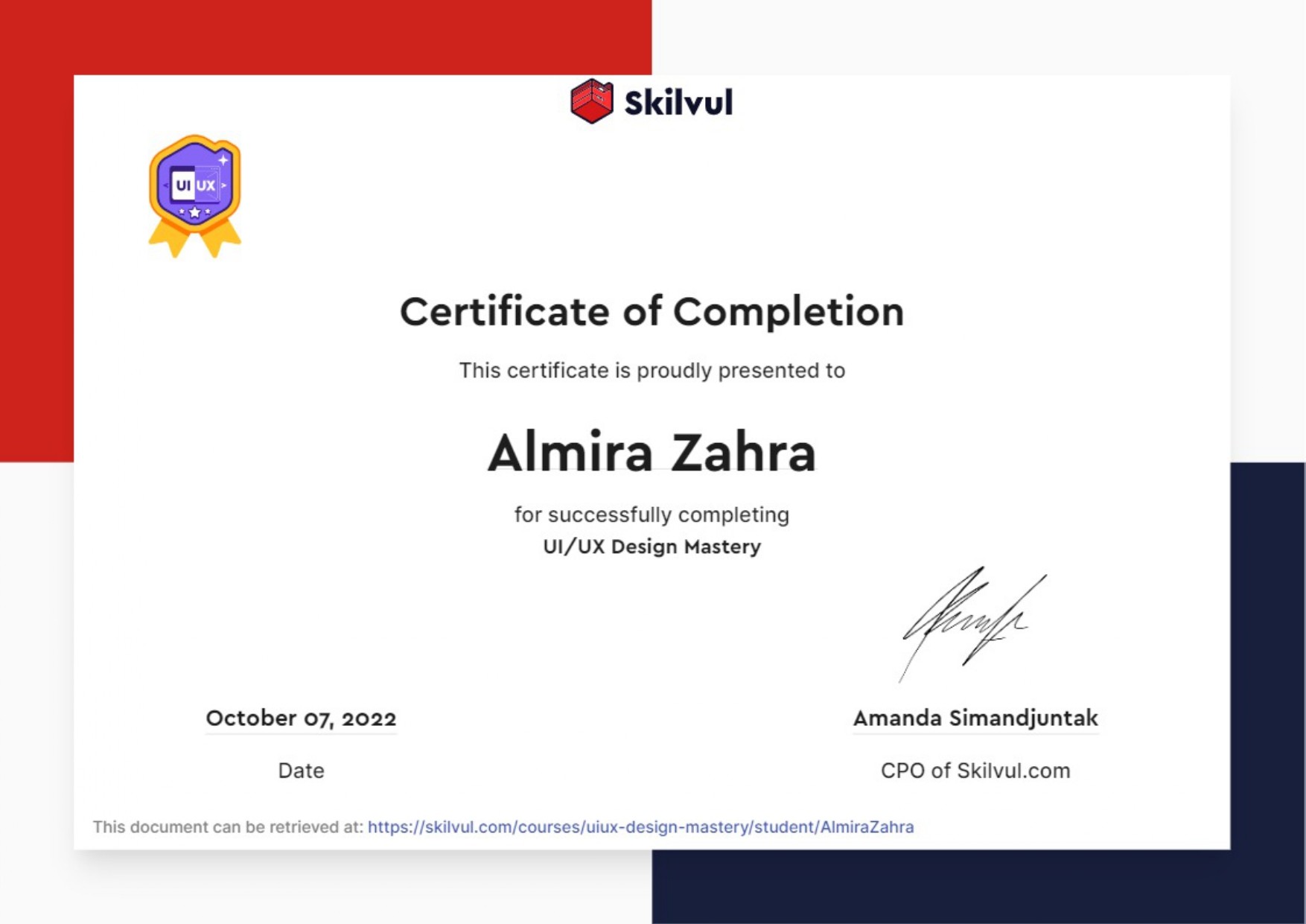 Certificate of Completion: UI/UX Design Mastery