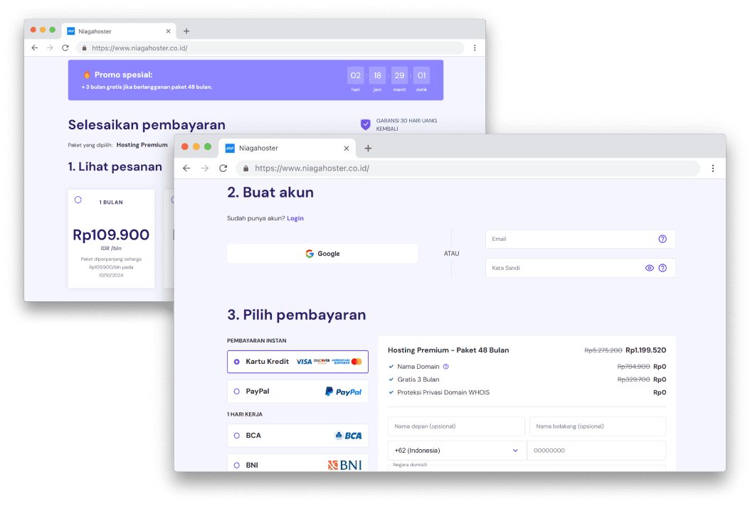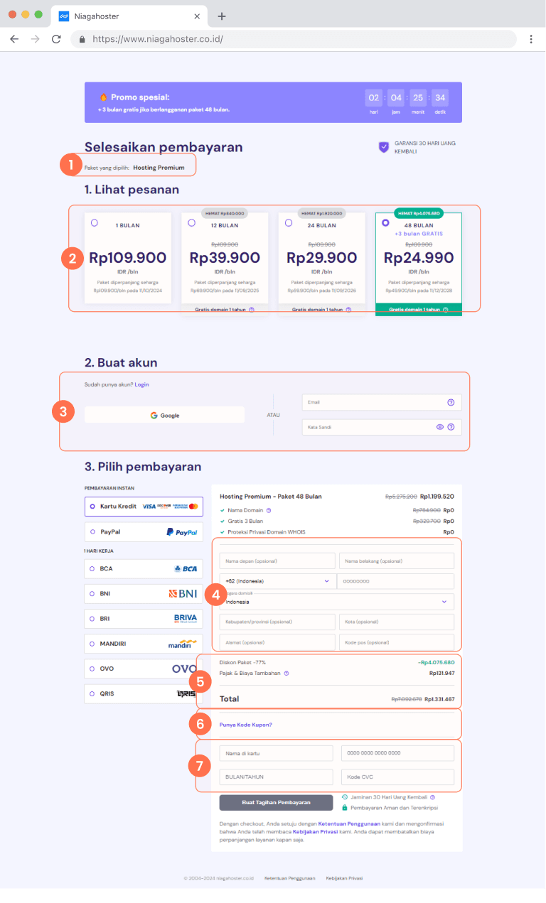 User data analysis on the Niagahoster website shows that 45% of users only get to the web hosting package checkout stage but do not complete the payment.